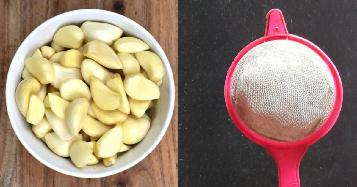 വന്നു തുടങ്ങും. അതിന് പകരമായി ചെയ്യാവുന്ന ഒരു ടിപ്പാണ് ഇവിടെ വിശദമാക്കുന്നത്. ആദ്യം തന്നെ വെളുത്തുള്ളി മുഴുവനായും അല്ലികളാക്കി വയ്ക്കുക. ഇത് കുറച്ചുനേരം ഫ്രിഡ്ജിൽ തണുപ്പിക്കാനായി വയ്ക്കുക. ശേഷം വെളുത്തുള്ളിയുടെ അല്ലികൾ ഒരു പ്ലാസ്റ്റിക് കവറിൽ കെട്ടുക. വെളുത്തുള്ളിയുടെ മുകളിലൂടെ ഒരു കട്ടിയുള്ള സ്റ്റീൽ പാത്രമോ കുപ്പിയോ ഉരച്ച് വിടുക, അതല്ലെങ്കിൽ ചായയുടെ അരിപ്പ ഉപയോഗിച്ച് ഇതേ രീതിയിൽ ചെയ്യാവുന്നതാണ്. പിന്നീട് കവർ തുറന്നു നോക്കുമ്പോൾ വെളുത്തുള്ളിയുടെ