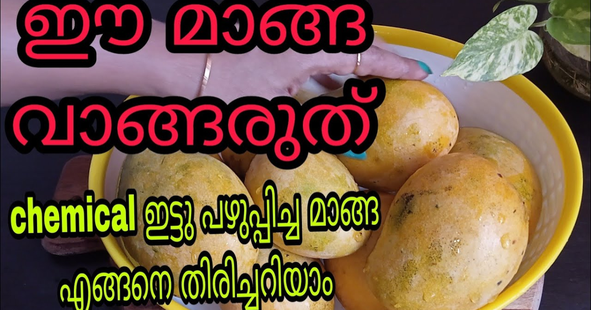 ആണ് കാണുന്നത് എങ്കിൽ അവ ഉറപ്പായും കെമിക്കൽ ഇട്ട് പഴുപ്പിച്ചതാകും. കൂടാതെ മാങ്ങയുടെ ഷേയ്പ്പിലും ചെറിയ രീതിയിലുള്ള മാറ്റങ്ങൾ കാണാനായി സാധിക്കുന്നതാണ്.കൂടാതെ നീല, വെള്ള നിറങ്ങളിലുള്ള സ്പോട്ടുകൾ മാങ്ങയുടെ മുകളിൽ കാണുകയാണെങ്കിലും ഇതേ രീതിയിൽ അവയിൽ കെമിക്കൽ ഉപയോഗപ്പെടുത്തിയിട്ടുണ്ടെന്ന് മനസ്സിലാക്കാനായി സാധിക്കുന്നതാണ്. മാങ്ങ തിരഞ്ഞെടുക്കുമ്പോൾ അവയുടെ പുറത്ത് ജ്യൂസ് ഒലിച്ച് നിൽക്കുന്നതായി കാണുകയാണെങ്കിൽ അതിനകത്ത് മരുന്ന് ഇഞ്ചക്ട് ചെയ്ത്