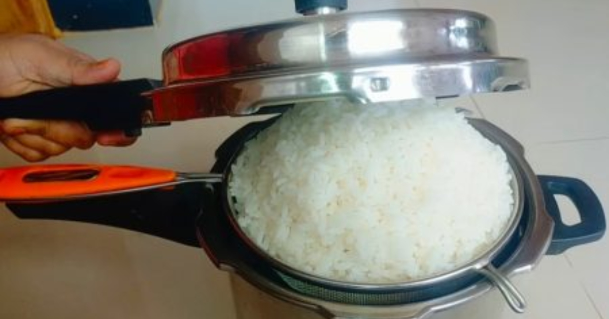 അതിനായി ആദ്യം തന്നെ കുക്കറിൽ കാൽ ഭാഗത്തോളം വെള്ളമെടുത്ത് അത് നന്നായി തിളപ്പിച്ച് എടുക്കുക. അതിനുശേഷം വേവിക്കാൻ ആവശ്യമായ അരി നല്ലതുപോലെ കഴുകി ചൂടായ വെള്ളത്തിലേക്ക് ഇട്ടുകൊടുക്കുക. കുക്കറിന്റെ അടപ്പ് തിരിച്ചു വെച്ച് കുറച്ചുനേരം ആവി കയറാനായി മാറ്റിവയ്ക്കാം. കുക്കറിന്റെ അടപ്പിനു മുകളിലെ ആവിയെല്ലാം പൂർണമായും പോയി കഴിഞ്ഞാൽ അരിയിലേക്ക് ആവശ്യമായ ബാക്കി വെള്ളം കൂടി ഒഴിച്ച് കുക്കർ ശരിയായ രീതിയിൽ അടച്ച ശേഷം സ്റ്റൗ ഓൺ ചെയ്യുക.