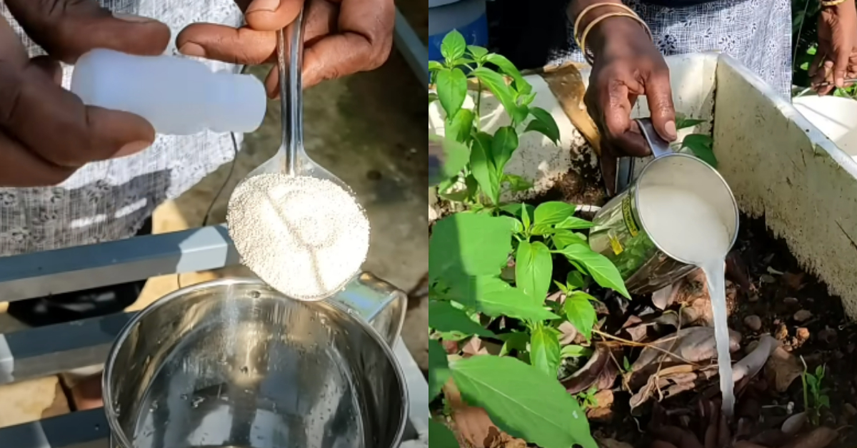 ഈസ്റ്റ് പഞ്ചസാരയും ഇട്ട ശേഷം ഇത് നന്നായി കലക്കി വെക്കേണ്ടതാണ്. രണ്ടു മണിക്കൂർ കഴിയുമ്പോൾ ഈസ്റ്റ് പുളിച്ചു പോകുന്നതിനാൽ അല്പം അളവ് കൂടിയ പാത്രത്തിൽ കലക്കി വെക്കുന്നതായിരിക്കും എന്തുകൊണ്ടും ഉത്തമം. രണ്ടു മണിക്കൂറിന് ശേഷവും ഈ വെള്ളം നമുക്ക് ചെടികൾക്ക് ചുവട്ടിൽ ഒഴിച്ചു കൊടുക്കാവുന്നതാണ്. Yeast Fertilizer For Vegetable Cultivation Credit : Chilli Jasmine